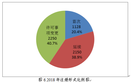 2018年,國(guó)家藥品監(jiān)督管理局批準(zhǔn)境內(nèi)第三類醫(yī)療器械注冊(cè)1709項(xiàng),與2017年相比減少48.2%,進(jìn)口醫(yī)療器械3819項(xiàng),與2017年相比減少32.1%。 按照注冊(cè)品種區(qū)分,醫(yī)療器械3734項(xiàng),占全部醫(yī)療器械注冊(cè)數(shù)量的67.5%;體外診斷試劑1794項(xiàng),占全部醫(yī)療器械注冊(cè)數(shù)量的32.5%。 按照注冊(cè)形式區(qū)分,首次注冊(cè)1128項(xiàng),占全部醫(yī)療器械注冊(cè)數(shù)量的20.4%;延續(xù)注冊(cè)2150項(xiàng),占全部醫(yī)療器械注冊(cè)數(shù)量的38.9%;許可事項(xiàng)變更注冊(cè)2250項(xiàng),占全部醫(yī)療器械注冊(cè)數(shù)量的40.7%。注冊(cè)形式比例情況見(jiàn)圖6。