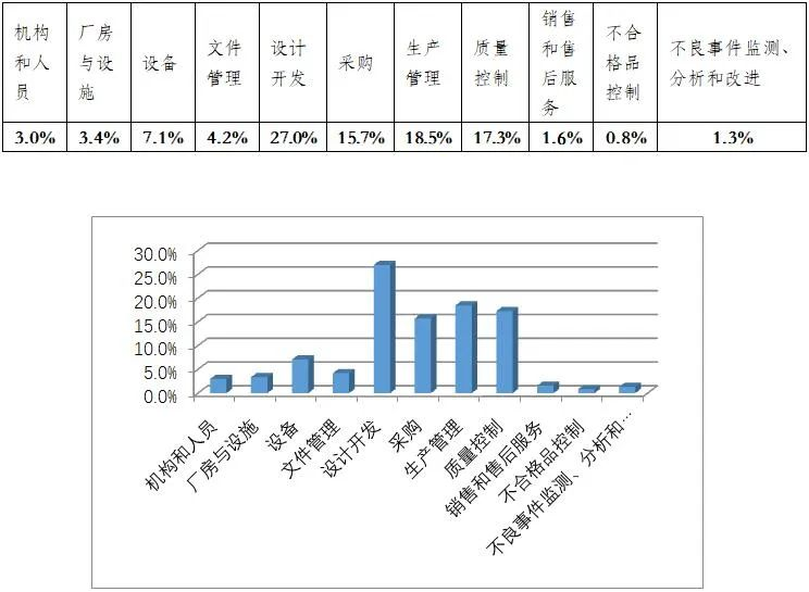 一、2022年度檢查概況 2022年度上海市器審中心依據(jù)《醫(yī)療器械生產(chǎn)質量管理規(guī)范》(以下簡稱規(guī)范)對有源類醫(yī)療器械生產(chǎn)企業(yè)(設備類,不含獨立軟件產(chǎn)品)開展了現(xiàn)場體系核查,涉及核查產(chǎn)品為185個。 從不符合項在《規(guī)范》中各章節(jié)的分布情況來看,規(guī)范的11個章節(jié)均有涉及。從各章節(jié)不符合項總數(shù)占比來看,占據(jù)前四位的分別為設計開發(fā)(27%)、生產(chǎn)管理(18.5%)、質量管理(17.3%)和采購(15.7%)。不符合項分布情況詳見圖一。 圖一 不符合項分布情況 三、現(xiàn)場核查常見問題 從2022年度有源醫(yī)療器械的現(xiàn)場核查發(fā)現(xiàn)的不符合項中出現(xiàn)問題最多的4個規(guī)范章節(jié)進行梳理: 現(xiàn)場檢查發(fā)現(xiàn)設計過程控制存在不足,主要體現(xiàn)在以下幾方面: (1)注冊人委托生產(chǎn)企業(yè)進行生產(chǎn)時,委托協(xié)議中雙方對研發(fā)的職責不明確,注冊人和受托生產(chǎn)企業(yè)對設計文件的轉移不充分。 (2)設計開發(fā)研發(fā)過程和輸出資料缺失。如現(xiàn)場未查見主控板的元器件、BOM清單、技術圖紙、主板電路原理圖、軟件源代碼等技術研發(fā)資料,或與實際生產(chǎn)樣機、產(chǎn)品說明書存在不一致。 (3)設計驗證不充分。如缺少對產(chǎn)品主要性能參數(shù)或與外部配合使用器械的驗證及相關記錄,產(chǎn)品部分功能未在技術要求中提及,未完成相關驗證。 (4)設計變更未進行及時的識別、評審、驗證和確認。 (5)產(chǎn)品風險分析及控制措施評價不充分,如產(chǎn)品開發(fā)新功能時未充分考慮臨床使用過程中的風險,未考慮產(chǎn)品故障情況下的非預期使用可能產(chǎn)生的風險。 現(xiàn)場檢查主要發(fā)現(xiàn)采購質量協(xié)議中未明確采購要求、主要部件未能滿足采購追溯等問題,主要體現(xiàn)在以下幾方面: (1)采購質量協(xié)議或采購合同中對主要采購部件的材質、性能、技術參數(shù)、質量標準等方面未做明確要求。 (2)原材料的進貨檢驗規(guī)范或驗證內(nèi)容浮于表面,僅對外觀、尺寸提出要求,未覆蓋關鍵性能參數(shù),與技術要求中整機性能參數(shù)有沖突。 (3)涉及軟件委外研發(fā)時,開發(fā)協(xié)議中未明確軟件需求、交付技術文件內(nèi)容、驗收標準、軟件更新及維護等內(nèi)容。 (4)關鍵部件未能追溯到供方的批號,對原材料批量問題無法開展分析和追溯。 現(xiàn)場檢查發(fā)現(xiàn)生產(chǎn)工藝不充分或關鍵控制點不明確、生產(chǎn)記錄不完整、主要零/部件無法追溯等問題,主要體現(xiàn)在以下幾方面: (1)部分企業(yè)存在生產(chǎn)過程簡單的問題,未對產(chǎn)品生產(chǎn)工序進行合理、有效分解細化,過度依賴部件模塊化。 (2)未對調試等關鍵工序制定詳細的作業(yè)指導書,存在依據(jù)經(jīng)驗進行生產(chǎn)的情況。 (3)生產(chǎn)過程未按照作業(yè)指導書中的要求執(zhí)行,生產(chǎn)記錄簡單,未記錄關鍵部件序列號或編號、軟件完整版本號,無法滿足可追溯的要求。 現(xiàn)場檢查發(fā)現(xiàn)檢驗規(guī)程不充分、檢驗記錄不完整、檢驗過程無法追溯等問題,主要體現(xiàn)在以下幾方面: (1)對檢驗規(guī)程未能覆蓋產(chǎn)品技術要求的檢驗項目,也未采取抽檢或過程控制等有效的質量管控方式。 (2)檢驗方法與產(chǎn)品技術要求或國家標準有區(qū)別時,企業(yè)未對所采用的方法進行科學有效的確認,未能提供上述不同方法的等同性說明。 (3)檢驗記錄缺少原始數(shù)值記錄,檢驗結果無法重現(xiàn)或追溯。 (4)對于檢驗條件和設備要求較高,企業(yè)不具備檢驗能力的,也未委托具有資質的機構進行檢驗,以證明產(chǎn)品符合強制性標準和經(jīng)注冊的產(chǎn)品技術要求。 (5)產(chǎn)品分別存在使用模式和檢驗模式的情況下,未對檢驗用軟件進行充分確認。