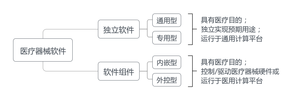 醫(yī)療器械軟件包括本身即為醫(yī)療器械的軟件或者醫(yī)療器械內(nèi)含的軟件,前者即醫(yī)療器械獨立軟件(簡稱獨立軟件),后者即醫(yī)療器械軟件組件(簡稱軟件組件)。 獨立軟件(SaMD)是指具有一個或多個醫(yī)療目的/用途,無需醫(yī)療器械硬件即可完成自身預期用途,運行于通用計算平臺的軟件;軟件組件(SiMD)是指具有一個或多個醫(yī)療目的/用途,控制/驅動醫(yī)療器械硬件或運行于醫(yī)用計算平臺的軟件。 獨立軟件作為醫(yī)療器械或醫(yī)療器械附件,通常單獨注冊,特殊情況可隨醫(yī)療器械進行注冊,此時雖不控制/驅動醫(yī)療器械硬件但從產(chǎn)品角度運行于醫(yī)用計算平臺,故視為軟件組件,如專用型獨立軟件可作為附件隨醫(yī)療器械進行注冊。 軟件組件作為醫(yī)療器械或醫(yī)療器械部件、附件的組成部分,不宜單獨注冊,需隨醫(yī)療器械進行整體注冊。